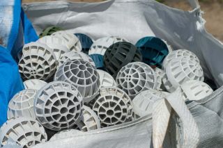 De bollen zijn circulair: gemaakt van gerecycled kunststof uit oude bierkratten, kunststof stoelen en ander consumentenafval. De constructie is “ingepakt” in speciale geotextielen. Deze filteren o.a. lekolie van geparkeerde auto’s uit het water en breken dit af met behulp van bacteriën. De fundering kan water bergen, vasthouden en gestuurd weer afgeven aan de omgeving via een slim drainagestelsel. Klimaatadaptatie en circulariteit ten top!