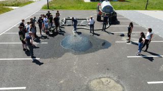 Hoe het water opgevangen wordt is goed te zien wanneer we experimenteren met water, zoals op de foto.