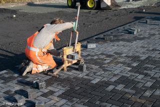 Deze stenen zijn voorzien van grotere ribbels aan de buitenkant, hierdoor is er ruimte tussen de stenen om via de brede voegen regenwater te laten infiltreren in de onderliggende waterbufferende fundering.